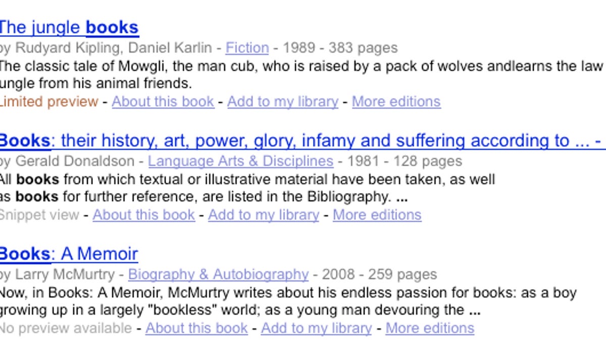 You have several choices under the settlement regarding how Google is allowed to display your book. You can ask Google to display the whole thing and charge for online access to the book, ask Google to display just a preview copy with links to bookstores where it can be found, have just a few snippets included, or exclude your books entirely from Google Book Search.