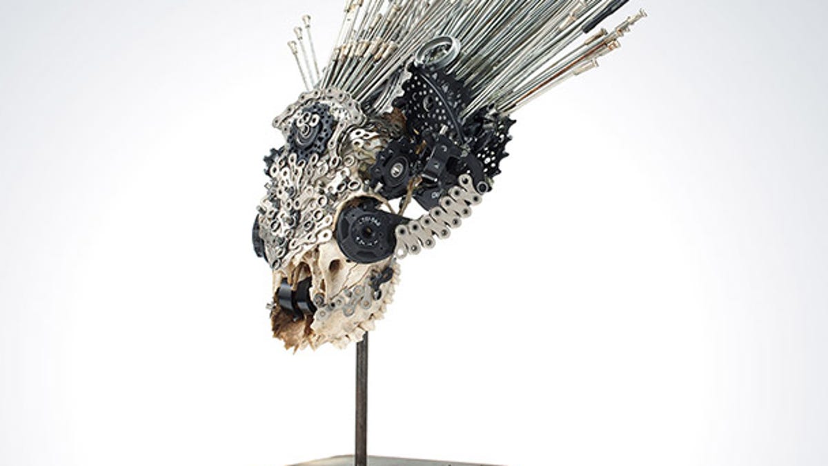 Chicago-based bike parts company SRAM gave a group of handpicked artists a box each of 100 high-performance bicycle components and told them to craft something amazing. They responded with everything from a bike-centric interpretation of Vincent van Gogh's famous "Starry Night" to a robotic ostrich, a crawling "Sramantis," and your typical Mary Jane-wearing bike chain quadruped with a plastic baby head.