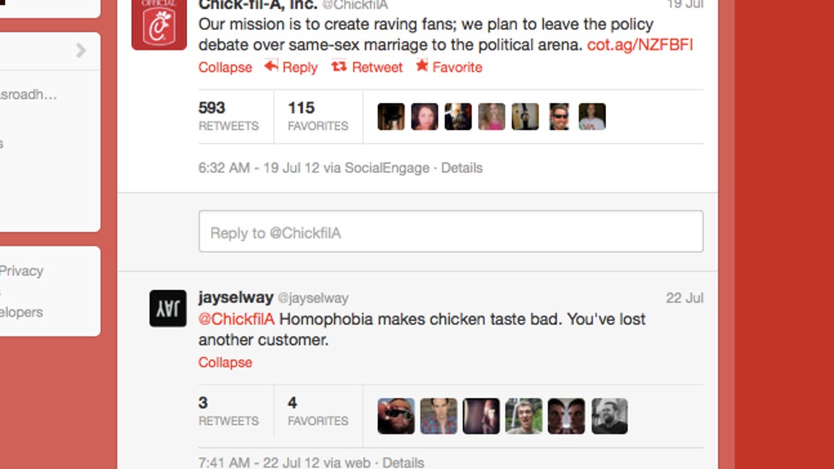 Naturally, many took to Twitter and Facebook. Not all wished to congratulate him on the Chick-fil-A family's long-lasting marriages.