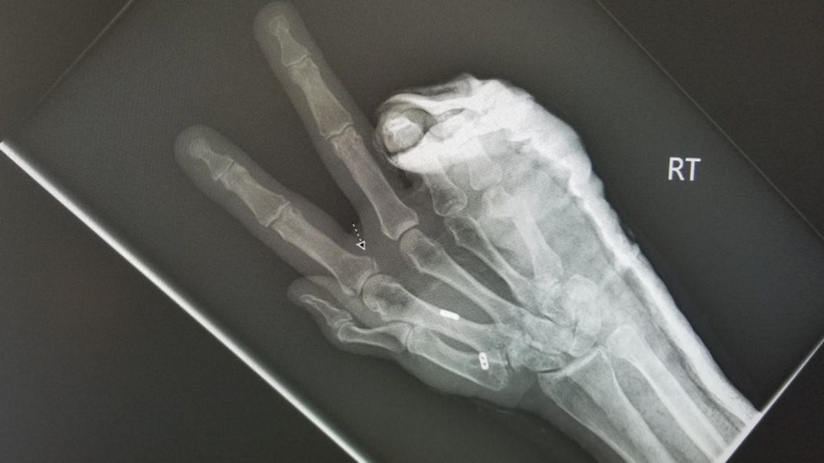 Two surgeries later, Brogan ended up with a broken metacarpal held together with two metal pins in her right hand, along with a cracked knuckle joint, road rash and a hematoma down her entire right leg. Her left hand was so badly swollen, doctors had to cut off her rings.