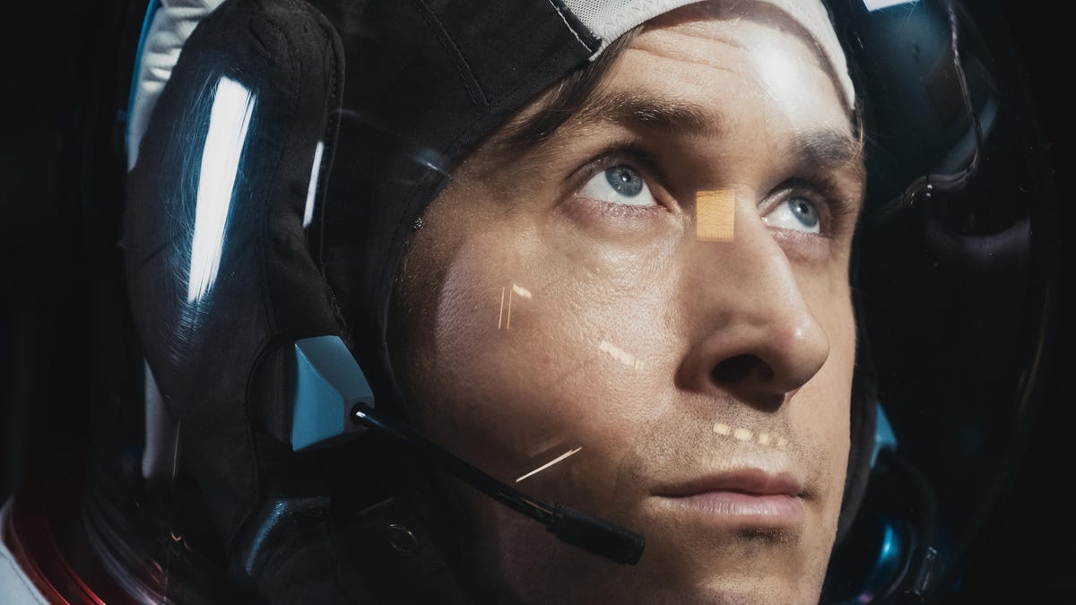 Makeup also played a crucial role in a pivotal scene in which Gosling's Neil Armstrong crashes a test flight, badly burning himself. "I wasn't sure if I was going too much, but Damien really wanted to make a statement with it," says Mowat of how he made up Gosling with fake burns. "It says, 'Look what happened to his face.' It establishes [space exploration] isn't fun and games, it's very high stakes."
