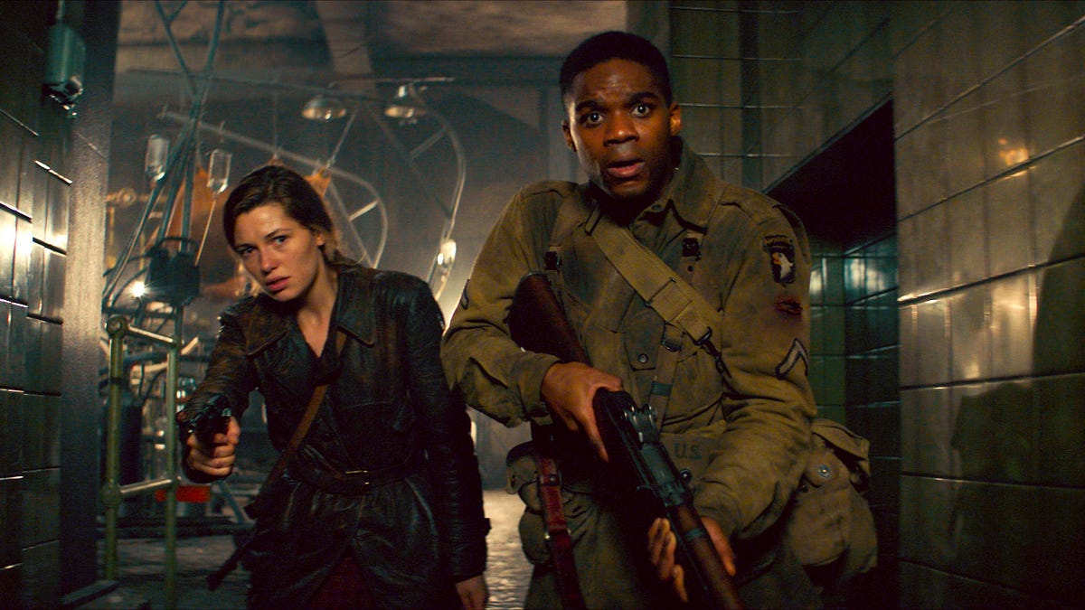 Hitting the ground, gentle GI Jovan Adepo and scarred and scowling Wyatt Russell lead the ragtag remnants of their squad to a gothic tower looming gothicly over a sleepy French hamlet, where terrified villagers keep disappearing into a secret lab full of Nazi scientists. When they bump into feisty fille Mathilde Ollivier, the stage is set for our band of brothers to take the fight to the undead baddies.Â