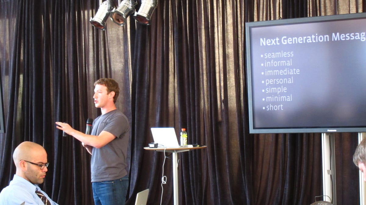 But unveiling an e-mail product wouldn't take into account all the other means of digital communication that have sprung up and are now used by hundreds of millions of people around the world, the young executive insisted. He says he was inspired by conversations with high schoolers who insisted to him that they use text messaging and Facebook messages in lieu of e-mail because "it's too slow" and "too formal."