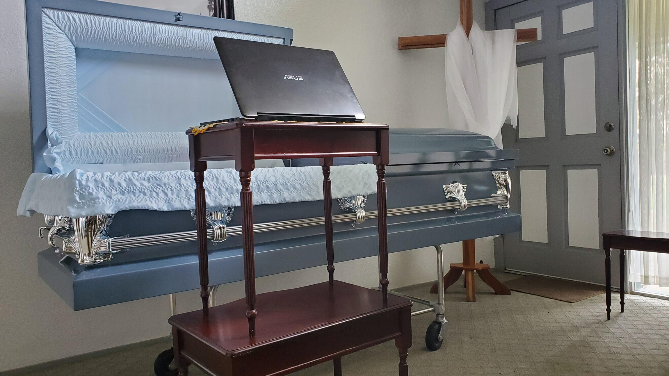 To prevent that extra stress, Fournier crafted a digital solution. She sets up her laptop in front of the casket or shroud and connects with the family on Zoom or Skype. They speak briefly to make sure the connection is stable and everyone can see, then she retreats to her office down the hall. Fournier checks back in an hour to see if the family needs more time or if anyone has logged off.