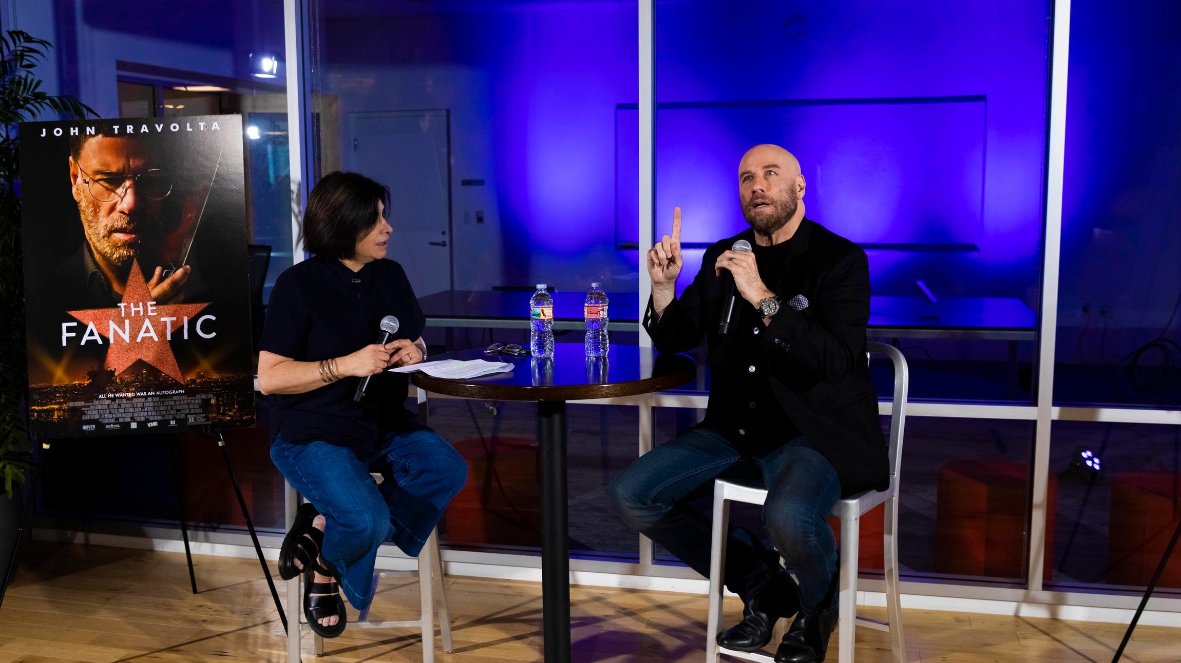 But he gets serious when he talks about playing an ardent fan-turned-accidental stalker in The Fanatic, which opens in theaters on Aug. 30. Written and directed by former Limp Bizkit frontman Fred Durst, it tells the story of a misguided movie fan named Moose (Travolta geeked out in Hawaiian shirts and New Balance sneakers) who gets a little too close to the object of his admiration, action star Hunter Dunbar (played by Devon Sawa).Things go sideways pretty quick.
