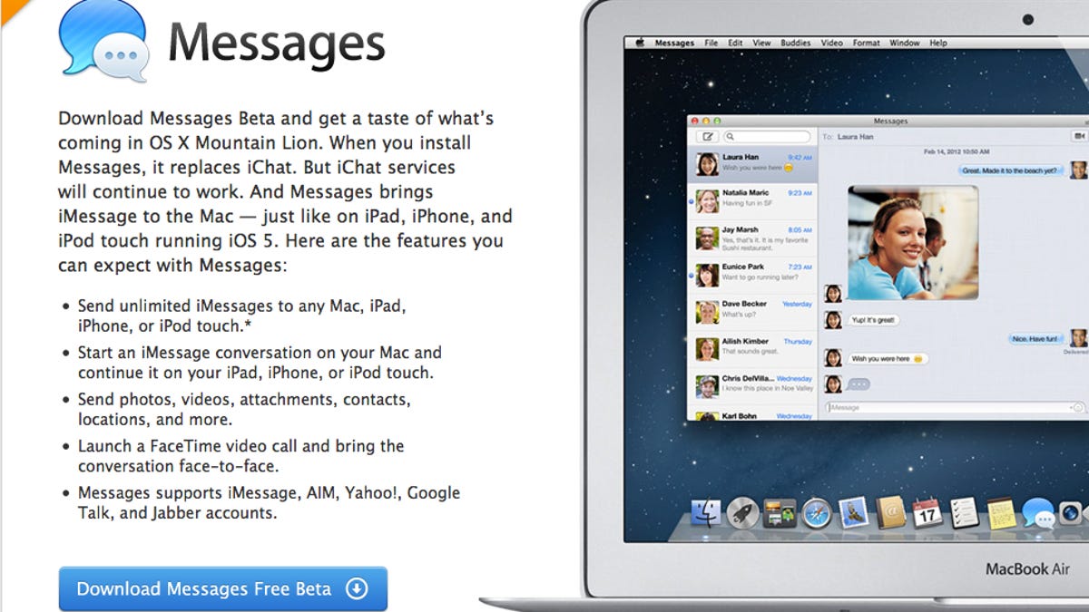But, to give the Mac and iOS faithful a taste of what's to come, a beta preview of the new Messages app has also been made available starting today. What's so special about the Messages beta? It includes iMessage for OS X, meaning you can send and receive iMessages from your Mac, iPad, iPhone, and iPod Touch--seamlessly.