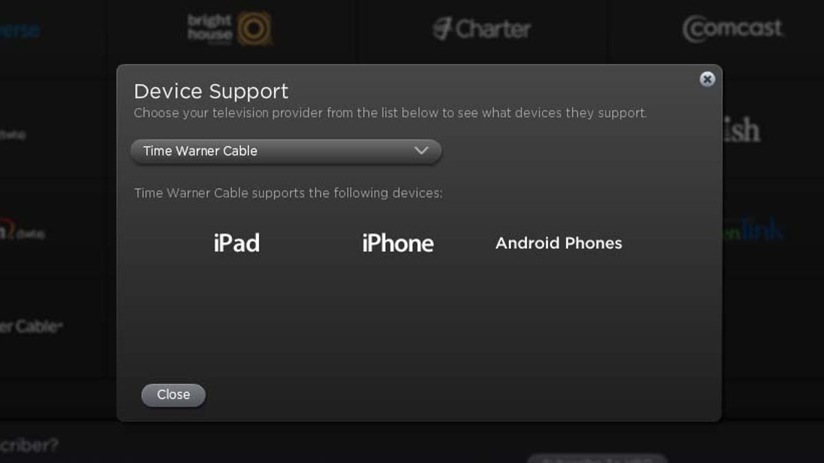 The main takeaway: Comcast and Time Warner Cable don't support anything other than smartphones and the iPad for HBO Go. That makes sense, maybe, if you consider that Comcast has its Xfinity app (launched yesterday alongside HBO Go), and Time Warner has is own TV-on-the-iPad app. But then again, it makes no sense at all.