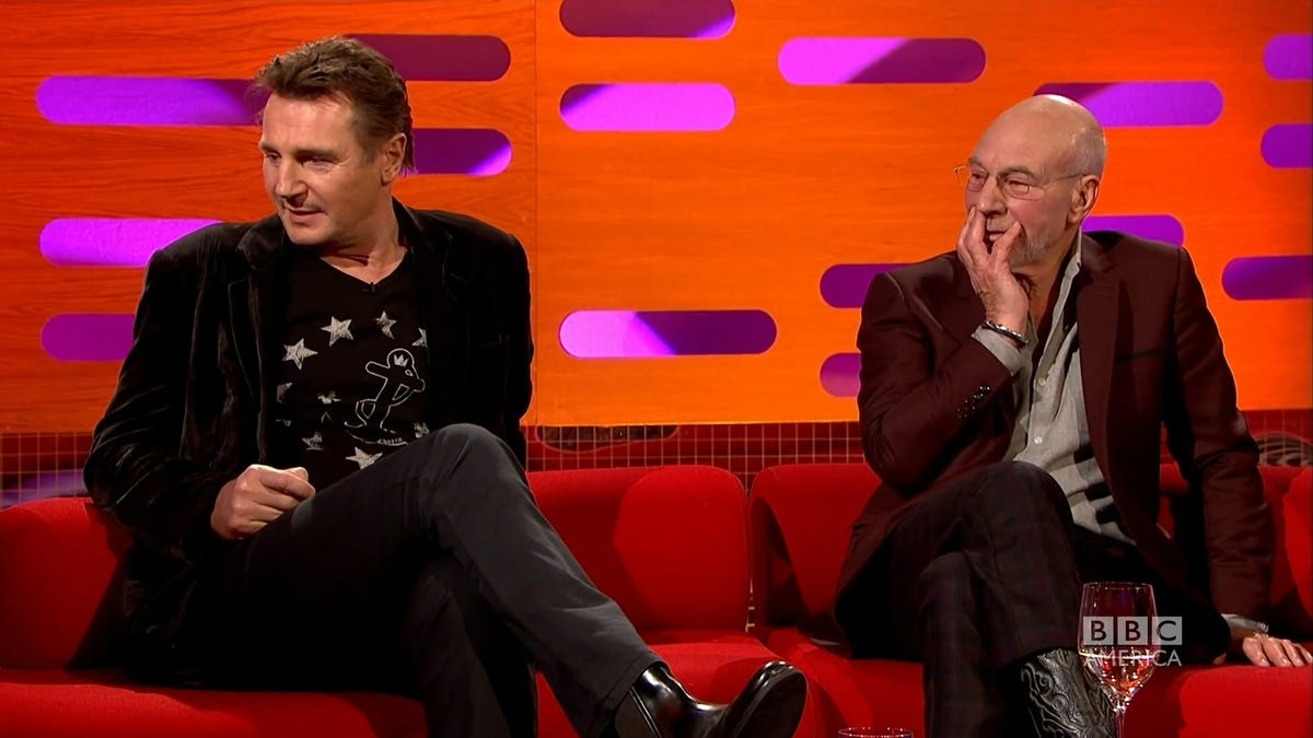 If you've never seen "The Graham Norton Show" on BBC, this is definitely one good way to get acquainted with it. With two major movie stars, Liam Neeson and Patrick Stewart, in one room, the outspoken comedian compares each actor's sci-fi action figure to see which franchise he likes best. I never thought I'd see a duel between Jedi Master Qui-Gon Quin and Captain Jean-Luc Picard.