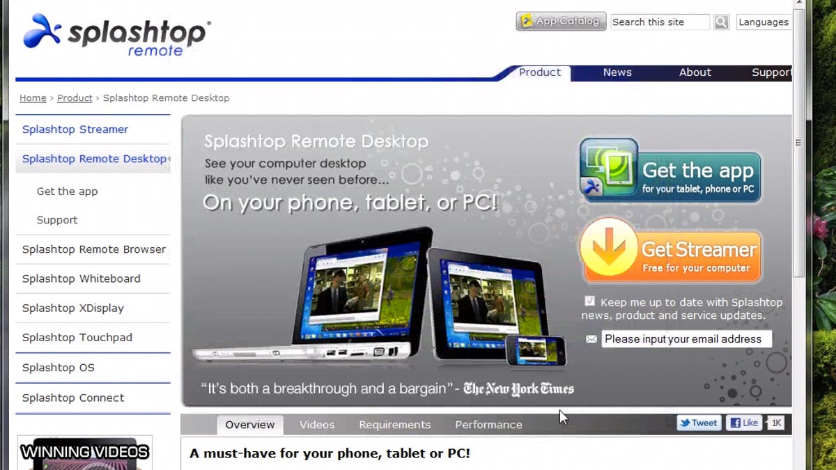 While it's cheaper than LogMeIn Ignition, Splashtop does not let you copy or move files from a remote computer to another or to the iPad. Nor does it offer a wake-on-LAN feature, as LogMeIn Ignition does. For simple access to a remote computer, complete with the ability to smoothly stream audio and video, Splashtop is hard to beat.