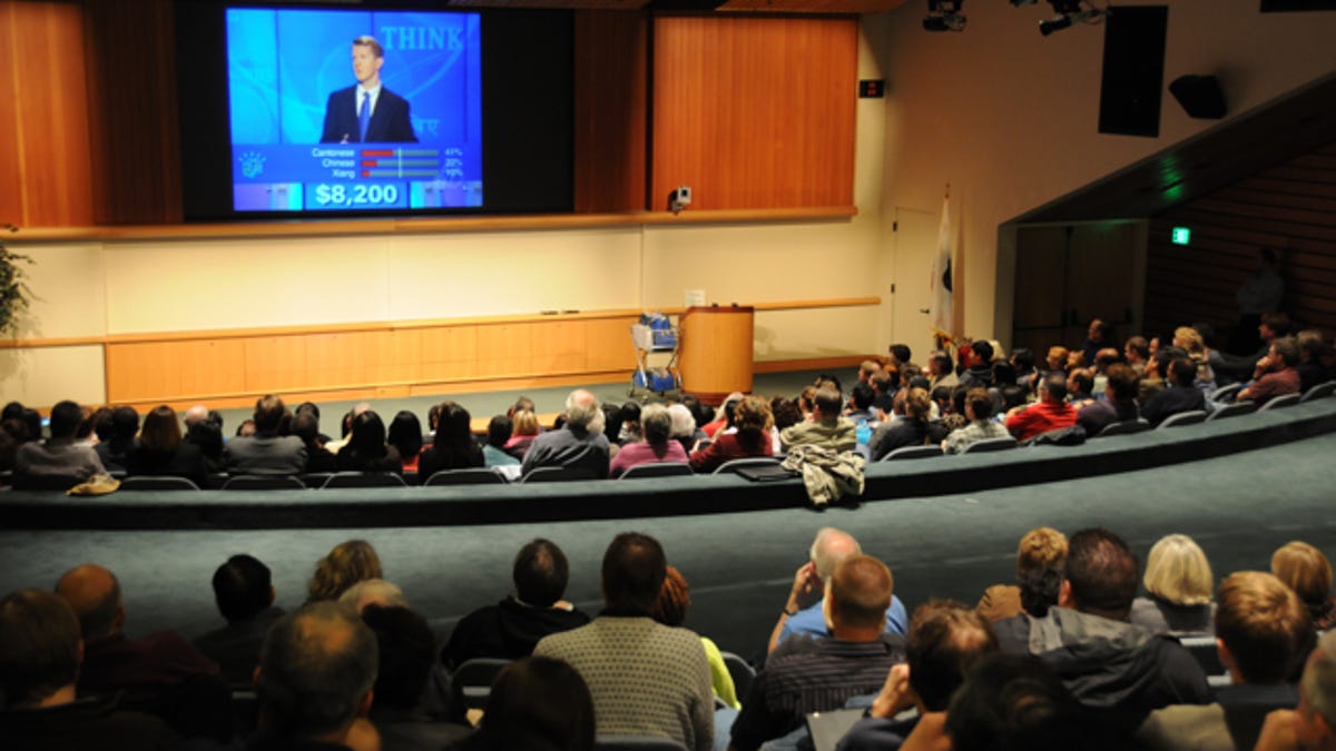 Throughout the evening, IBM Silicon Valley human resources manager Alexa MacDonald fired up the crowd with a series of IBM- and "Jeopardy"-related questions. One showed how closely the group had been paying attention to the project. When MacDonald asked what the correct answer to the first match Final Jeopardy question was--the very same question that Watson botched by responding with "Toronto," about half the room shouted out "Chicago!"