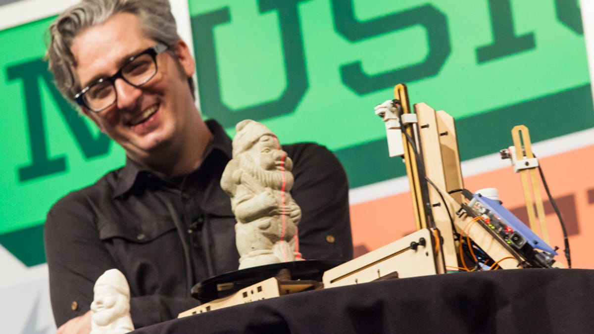 "LASERS," read a slide with factoid about his company's latest 3D printer, the MakerBot Digitizer.