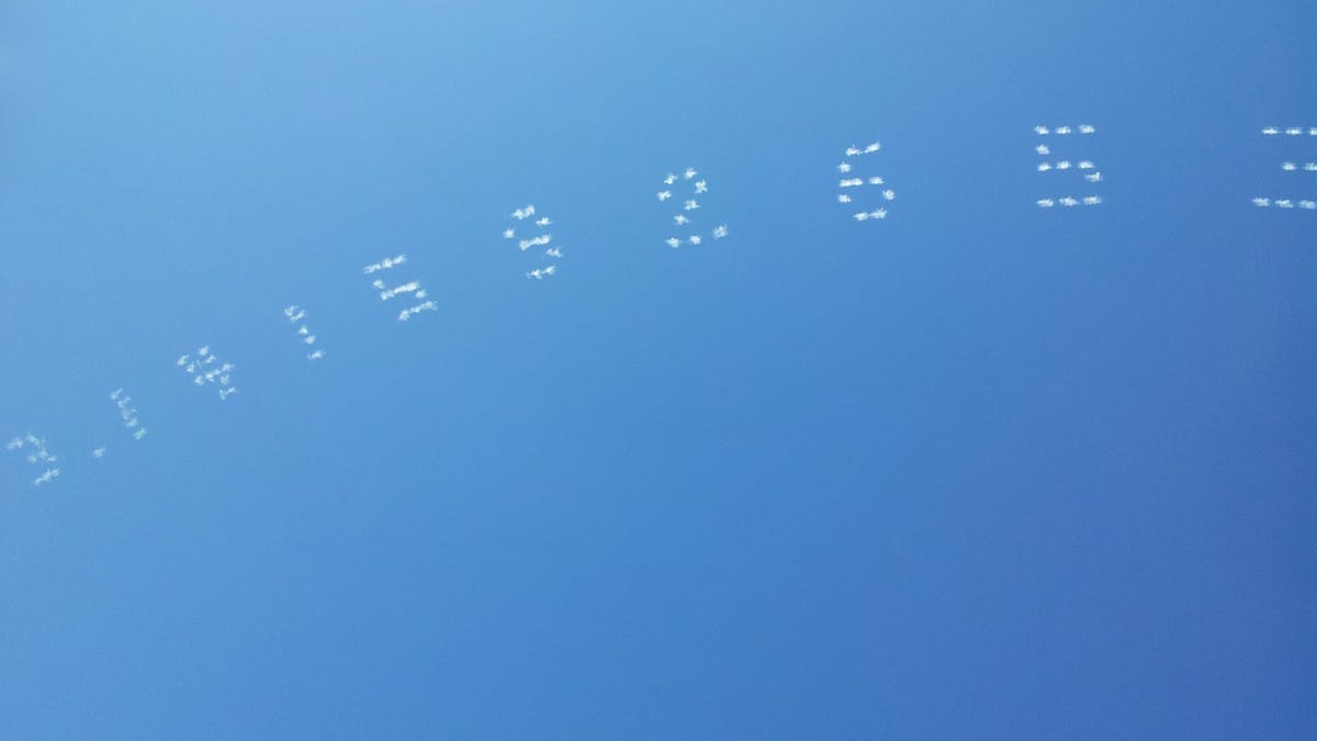 So why did someone write out a bunch of pi numbers in the wild blue yonder? The official Facebook page for the occasion says Pi in the Sky "explores the boundaries of scale, public space, permanence, and the relationship between Earth and the physical universe. The fleeting and perpetually incomplete vision of pi's never-ending random string unwinding in the sky will create a gentle provocation to the Bay Area's seven million inhabitants."