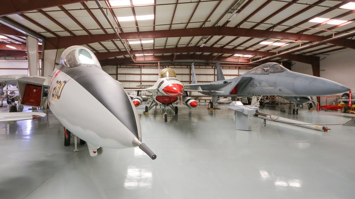 Before you get to the jets, however, there's the Legends hanger, where propeller aircraft from the dawn of flight through WWII sit in beautifully restored form. In another rare pairing, there's even an early P-51 Mustang next to a late-model P-51 Mustang. It's amazing to see how rapidly the design progressed during the war. Once you've had your fill of biplanes and gyrocopters and medium-size bombers, you head to the Starfighter hanger, with myriad jets from the end of WWII to the modern era. There's a few more WWII aircraft in here, including an SBD Dauntless, a P-40, and even a Wildcat built by General Motors.