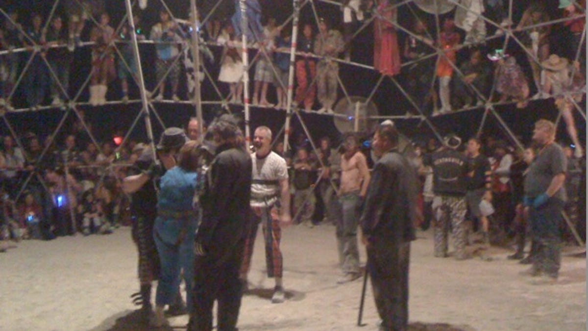 Update (Monday, 8:05 p.m. PT): The answer to today's challenge -- which 62 people got right -- is Death Guild's Thunderdome at Burning Man in the Black Rock Desert of Nevada. Thanks to everyone who played, and to all, please come back for Tuesday's challenge.