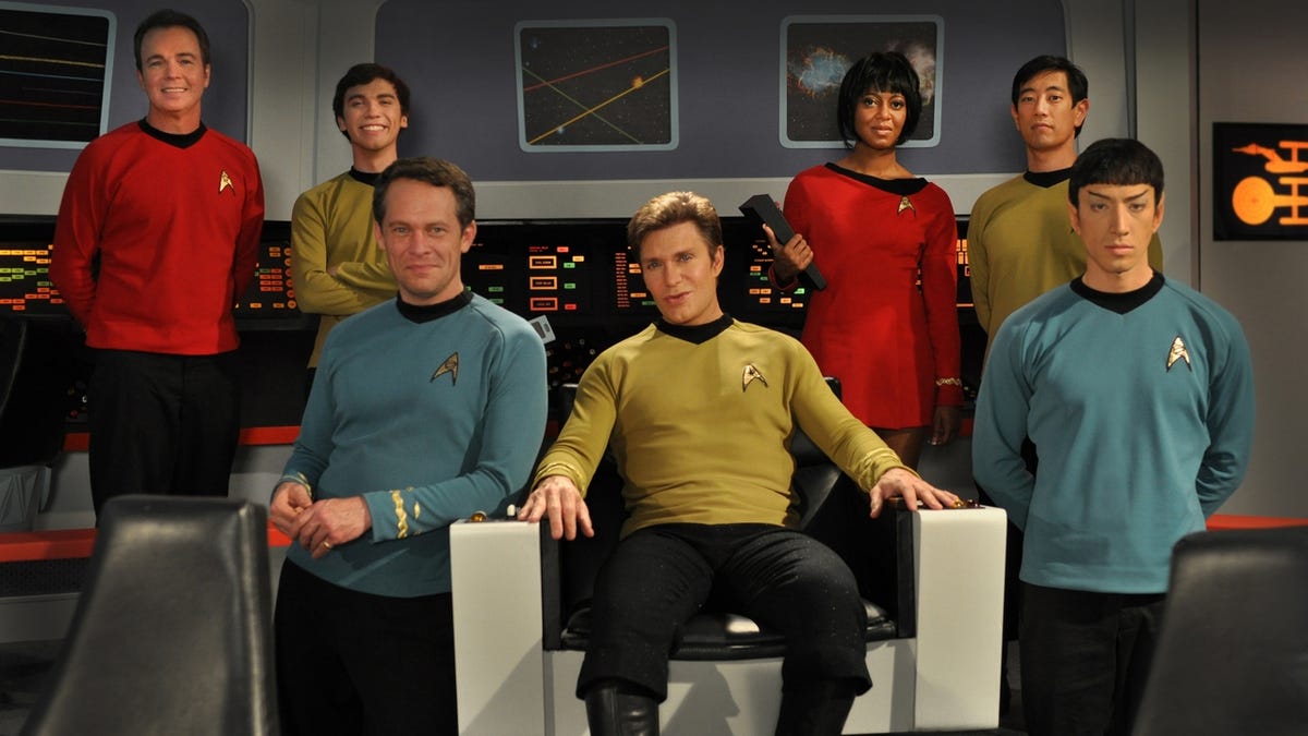The episode was shot at a 10,000 square-foot warehouse that hosts impressively accurate reproductions of the Enterprise bridge, transporter room, sickbay, and other classic sets.