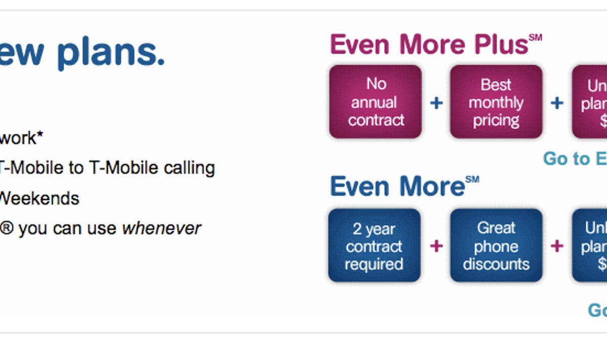 They are split into two major categories: the Even More Plus plans that don't include hardware subsidization but has no contract, and the Even More plans that include hardware and have a two-year contract.