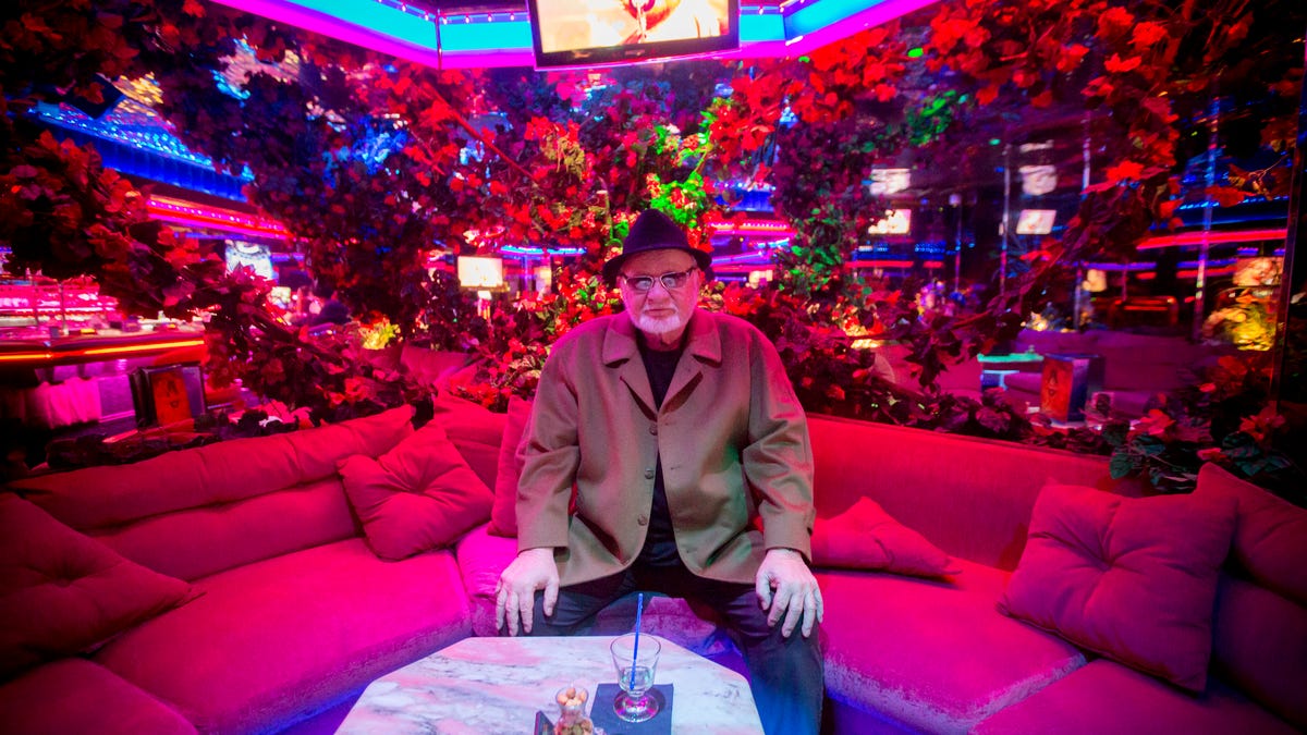 The Peppermill, where I'm meeting Cullotta, is a time machine back to another era of Vegas. The room is bathed in neon pink and purple lights. They're so overpowering that even though I know Cullotta is wearing a Movado watch made of precious metal, I can't tell what color it is. The light is reflected in the small, mirrored tiles on the ceiling; it looks like a hundred disco balls have been flattened and wallpapered above us.