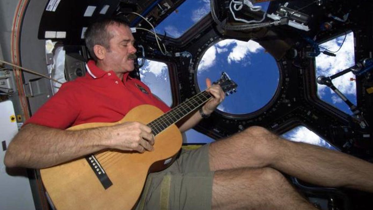 Inspired by the view from the ISS cupola, the mustachioed commander of Expedition 35 grabbed a guitar and recorded an original tune, a first for the station. He titled it "Jewel in the Night" and uploaded it to YouTube. Give it a listen below.