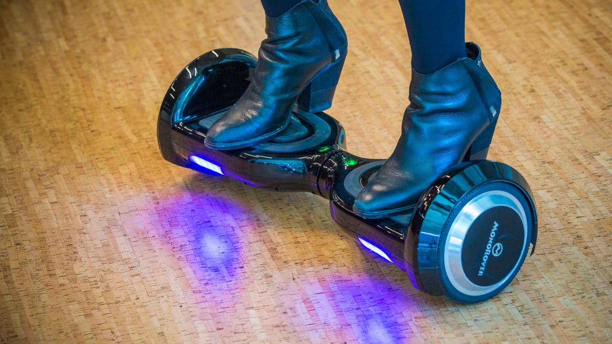 About 10 minutes before he snapped this photo, my colleague Sean Hollister (aka Hoverboard Wiz) took me and the wheeled gadget to CNET's basement level, where I kicked off my 2.5-inch shoes to master the basics of mounting, dismounting and moving around without going splat.
