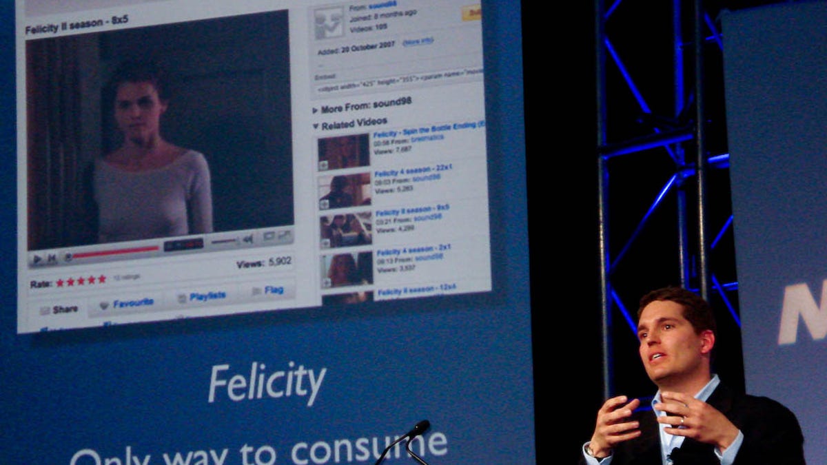 During a presentation Wednesday at the National Association of Broadcasters 2008 conference, Kilar stood in front of an image of a YouTube Web page that featured a clip from the TV show Felicity. Kilar told the audience, "the only way to get (Felicity) is from unauthorized sources."