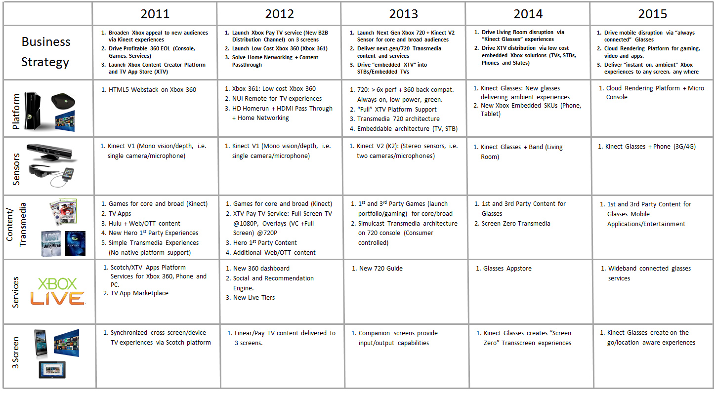 An atomic rumor in the gaming world exploded on Saturday, perhaps the largest in recent memory, innocently tucked away in a random NeoGAF forum thread. The weapon, a leaked 56-page confidential Microsoft Powerpoint file, serves as a possible early vision for Microsoft's Xbox strategy through 2015 by including juicy conceptual details about the code-named Xbox 720, Kinect 2, and several pairs of augmented-reality glasses.