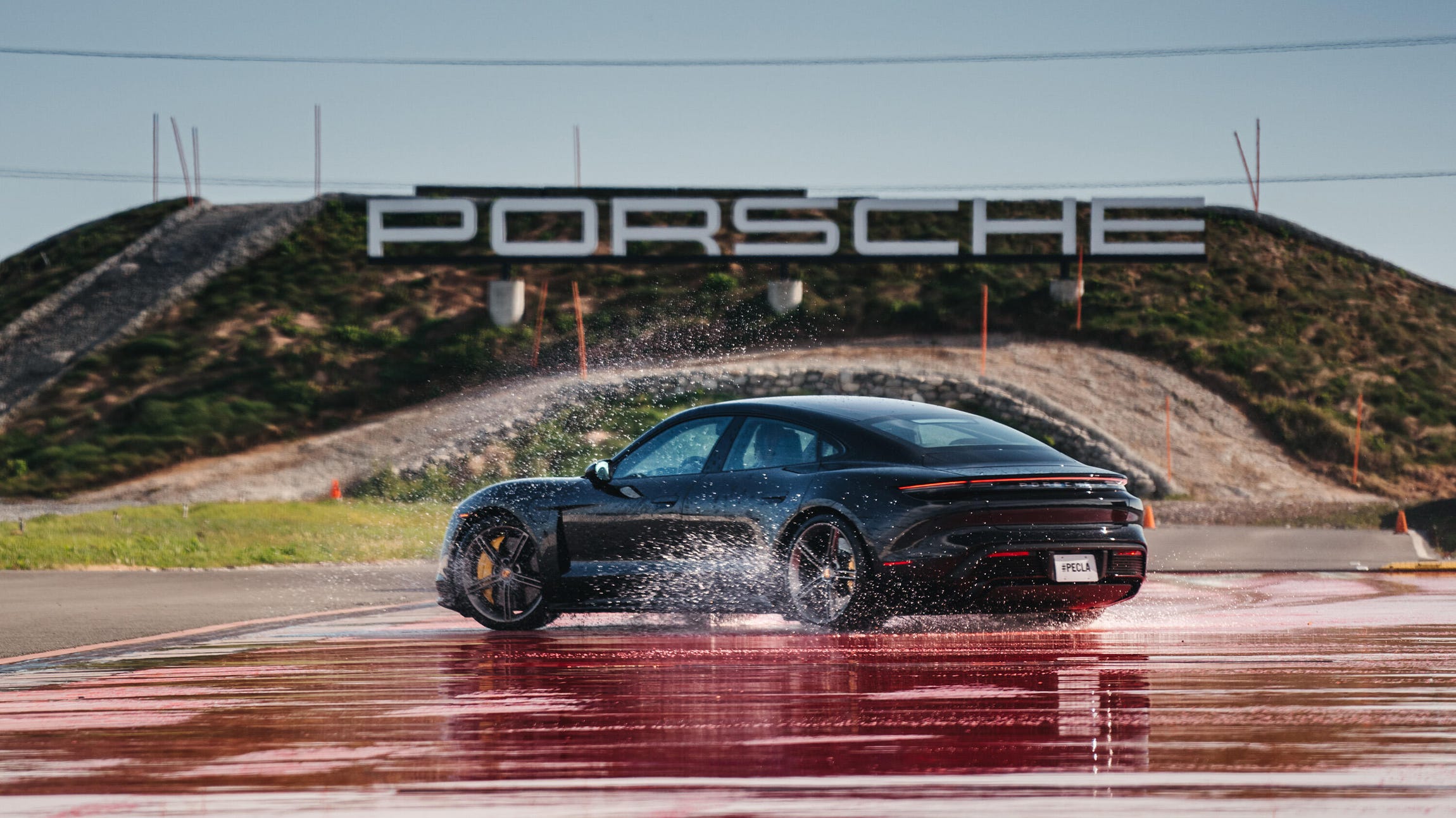 From there, the instructor takes you over to what's called the kick plate -- a weight-sensitive block of wet pavement in the track that throws the car into a skid without warning. You go slow for this one, maybe 20 mph at first, and when you hit the wet plate, the ground shifts and throws the car into a skid. From there, it's up to you to react with steering and point the nose of the Taycan toward a marker cone at the other end of the course. The first time through can feel jarring, but if you've ever hit a patch of black ice in winter, the experience is familiar. Eventually, the instructor has you dial in more and more speed, which not only increases the intensity and angle of the skid, it ups the fun factor, as well.