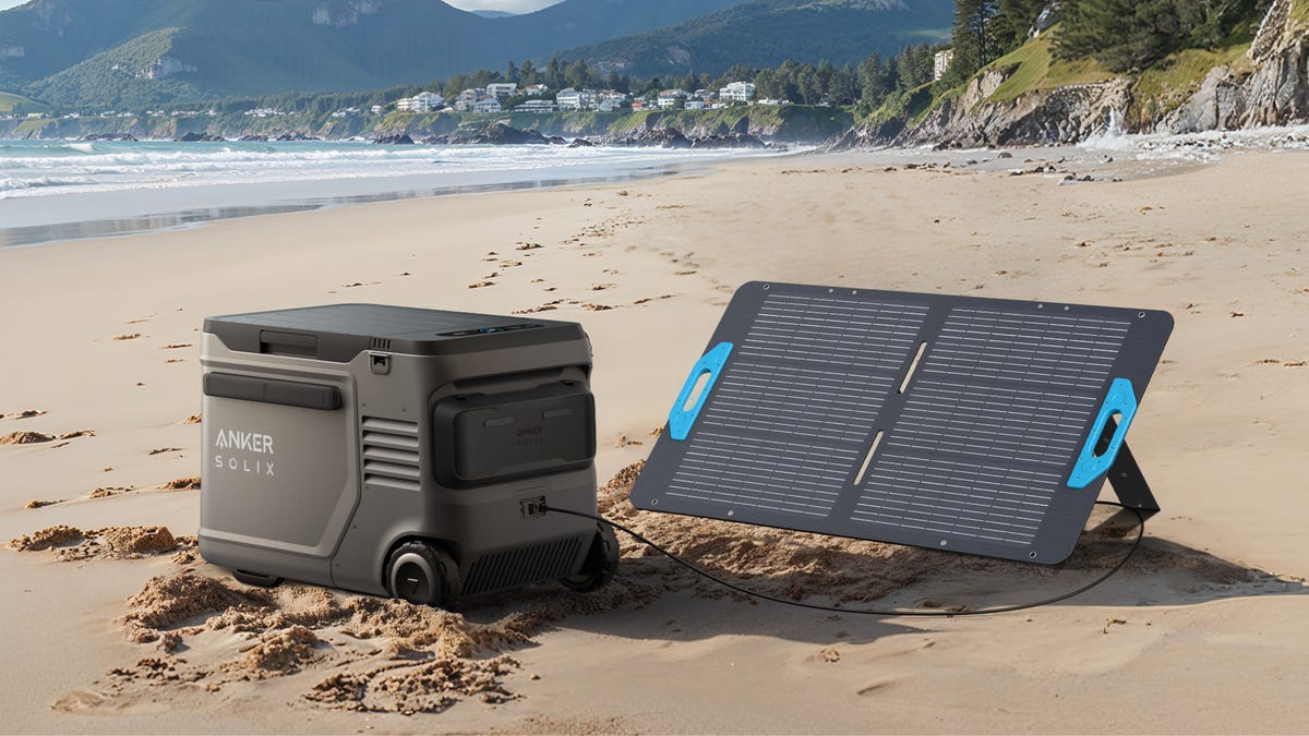 The EverFrost 2 also pairs nicely with Anker's solar umbrella, a foldable and fully functional umbrella with "Pereovskite solar cells" that improve solar generation by 30% in bright light and double its efficiency in low-light conditions. The umbrella's XT-60 and USB-C ports allow you to output 100W and it'll also work with portable power stations.