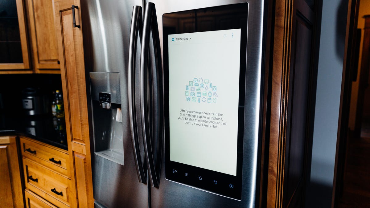 The fridge's giant built-in LCD screen instead said, "After you connect devices in the SmartThings app on your phone, you'll be able to monitor and control them on your Family Hub." Hrm.