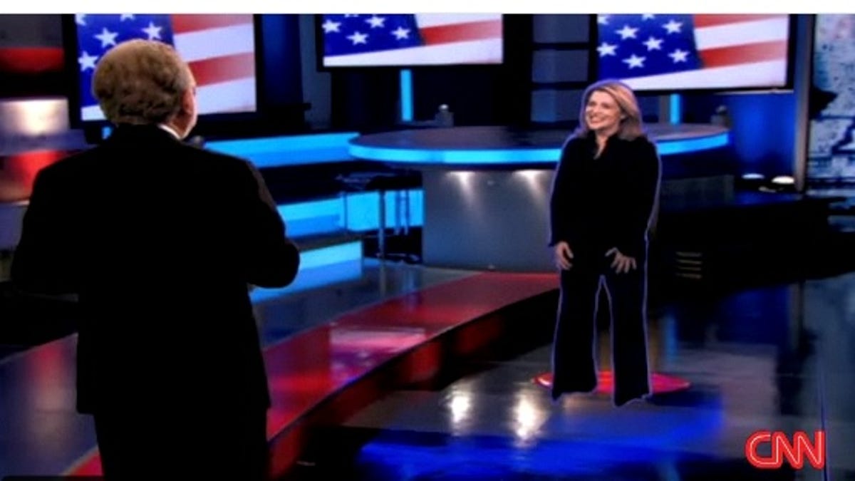 According to CNN, it was real "hologram" technology that beamed Jessica Yellin, a CNN correspondent from Chicago, to the CNN press center in New York, where Wolf Blitzer could grill her about what was going on in Chicago.