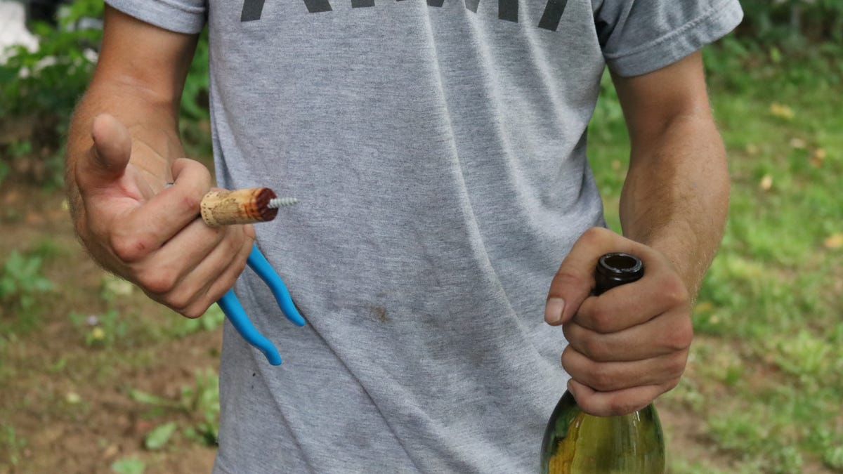 Cork stuck inside the bottle? Here's how to remove a cork from inside a wine bottle with cable ties.