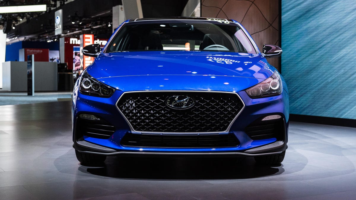 Hyundai borrowed a good deal of this car's upgrades from the European-spec i30 N. There's a more aggressive front spoiler, a grille specific to this trim, loads of N Line badges, black side mirrors and 18-inch wheels. Out back, there's a different rear bumper. Manual-transmission variants also get Michelin Pilot Sport 4 summer tires wrapped around those alloys.