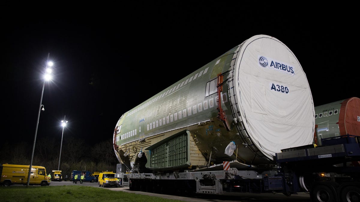 Building the world’s largest airliner all starts on the back of a truck in the French countryside.