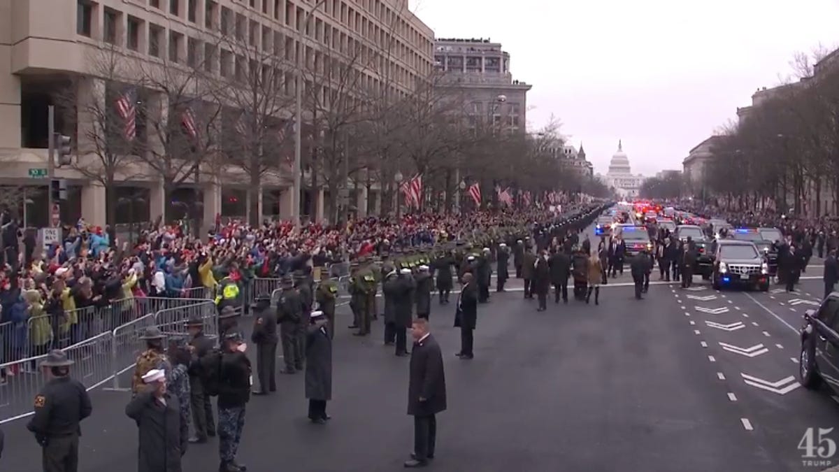 And there was a video taken by NBC News correspondent Katy Tur at 1:40 p.m. ET showing empty stands and thin crowds along the parade route.