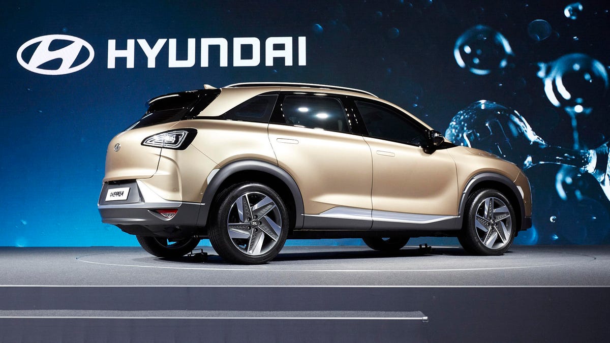 In terms of style, the FCEV looks much closer to production than its forebear, the FE Concept, which debuted at the Geneva Motor Show earlier this year. The exterior now has a more traditional grille, and the fact that it's a crossover should surprise precisely no one, given how much the market loves crossovers. It's also a far cry from the Genesis GV80 concept we saw at the New York Auto Show.