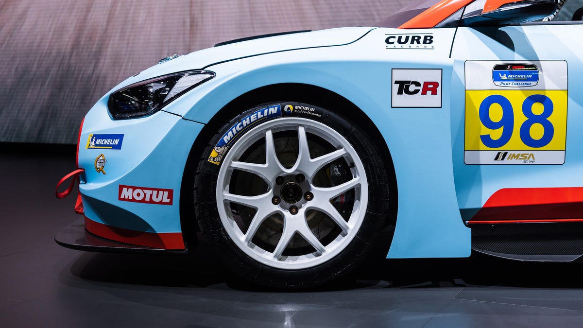 Hyundai introduced its new Veloster N TCR race car at the 2019 Detroit Auto Show. It's meant to compete in the IMSA Michelin Pilot Challenge, which was renamed from the Continental Tire SportsCar Challenge after the title sponsors swapped at the end of 2018. The Veloster N will race in the touring car (TCR) class, one of two classes in the series.