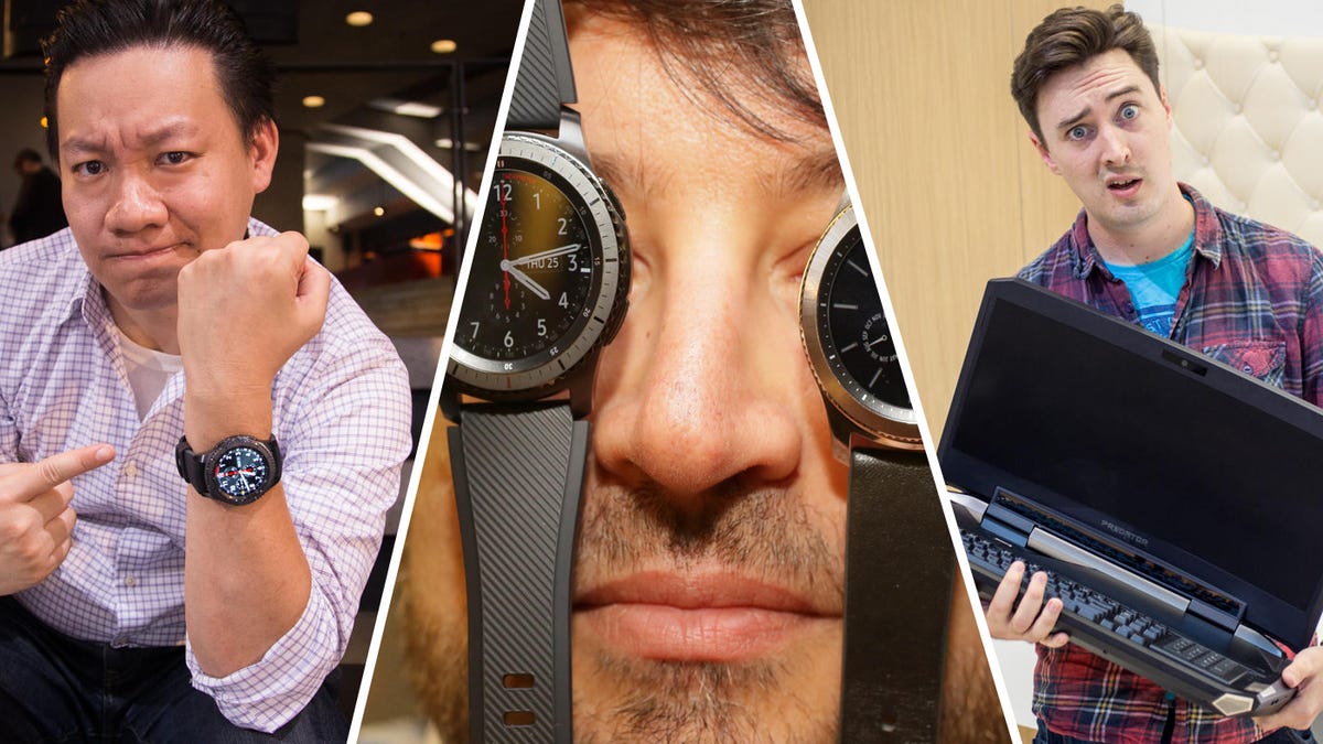 - Samsung introduced a new smartwatch: The Gear S3 from Samsung is bigger and more stylized than iterations past, with a rotating bezel and steel encasing. The device also has a 380mAh battery and Samsung Pay, and it runs a Tizen-based OS (but is compatible with Android -- and eventually iOS -- phones).