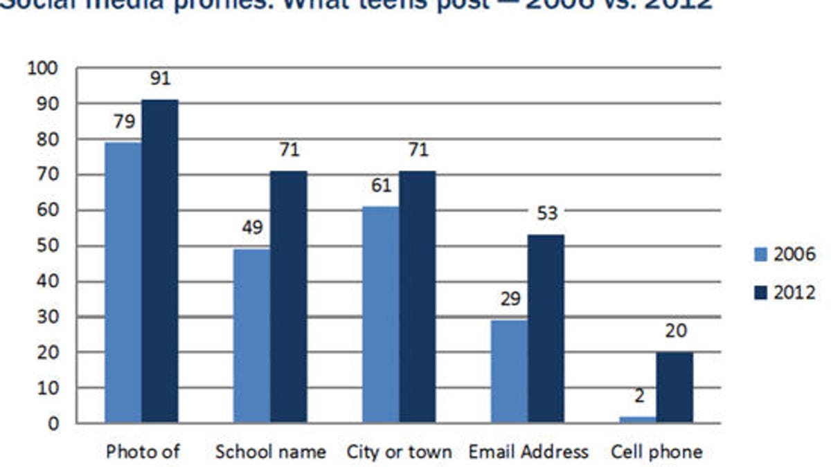 While "teens are sharing more information about themselves on social media sites than they did in the past," according to the study, "few teens embrace a fully public approach to social media," but "take an array of steps to restrict and prune their profiles." Here's the full report.