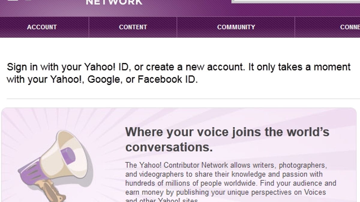 Maybe, maybe not. The Yahoo Contributor Network is, to be honest, sort of obscure. It was originally an independent site called Associated Content -- a content farm that paid users a pittance to publish their written submissions, plus a bonus for any traffic generated. (Such "low-cost content," as it's known in the biz, is basically a lure used to draw search traffic to ads displayed nearby.) Yahoo acquired Associated Content two years ago, reportedly for more than $100 million.