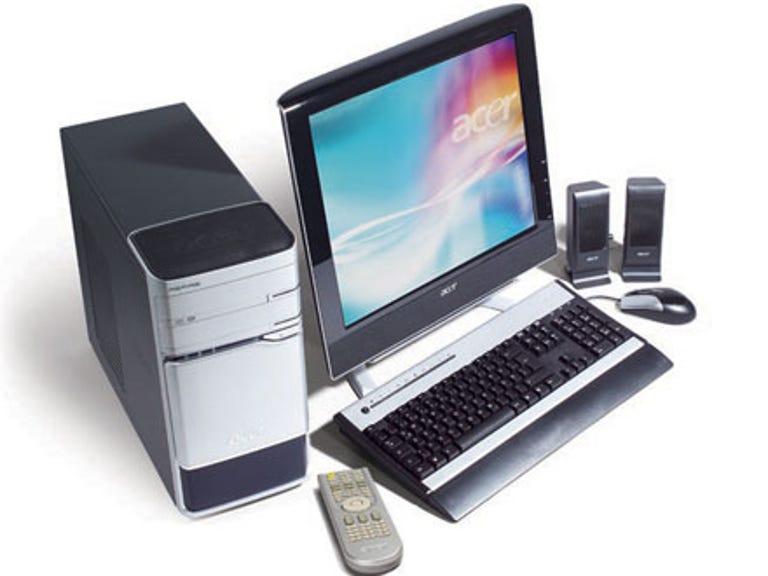 The PC can be purchased with or without a display. Acer gives users the option of bundling up to a 24" widescreen LCD, or one of three LCD TVs -- 26", 32" or 37". Connecting these external displays is facilitated by the DVI, VGA or S-Video ports. There's no HDMI, component or composite video outputs.