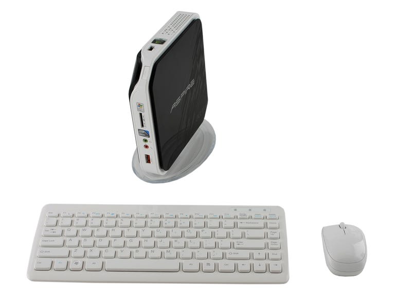 The lack of wireless networking also ruins the illusion that this compact desktop will somehow improve the aesthetics of your home because of its size. You still need to connect at least a wireless networking adapter, and the bundled wired mouse and keyboard add further tethered clutter. Acer has made the Revo 1600 VESA-mount compatible, which means that you can mount in on the back of any VESA-compatible LCD, effectively hiding the system out of sight. We suspect few of you will go to that trouble, but the option may have some appeal for those looking to maximize desk space.
