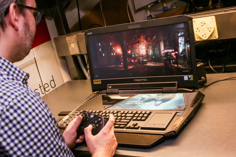 Once you've got a compatible game set up and running, the combination of overclocked dual Nvidia 1080 GPUs, overclocked Intel Core i7 CPU (both are software overclocked, via Acer's Predator Sense app) and the G-Sync display make for an incredibly smooth experience. Of course, very few PC games today even need dual cards to run at very high settings, and the fact that this display has a fairly modest resolution helps, too. However, for such an expensive system the performance wasn't always better -- and was in some cases slower -- than much less expensive gaming laptops and desktops. This is even after we updated to a new BIOS provided by Acer. (Deux Ex: Mankind Divided gave us unusually low frame rate scores, for example, although other games and 3D apps performed well.)