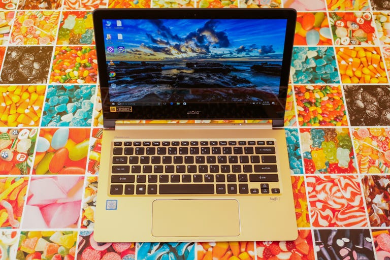 Its main competition is the very similar HP Spectre, as well as the recent Asus ZenBook 3, and even Apple's 12-inch MacBook. Still, before we get caught up in shaving tenths of a millimeter off these things, note that the Swift 7 and Spectre are both just about 10 mm thick (9.98 mm and 10.4 mm), while the ZenBook 3 is pretty close, at 11.9 mm thick. That's a very small difference, and you'd be hard-pressed to notice, even when they're sitting next to each other. All three of those Windows laptops manage to be so slim in part because of what they leave out. All are locked to relatively unimpressive 1,920x1,080-pixel-resolution displays, and all lack a touchscreen.
