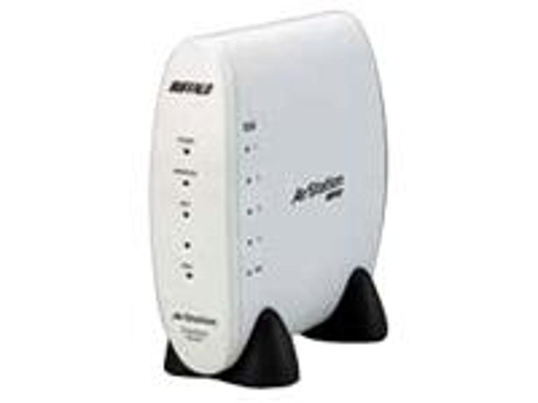 The Buffalo AirStation 54Mbps wireless broadband router includes everything you need to create a secure, high-performance home- or small-office wireless network. It not only delivers close to top speed and range, it also works with older Wi-Fi radios without a problem. Its array of security features erects a wall around your network that even the most enterprising hacker will find hard to penetrate. On the downside, the AirStation comes with only limited mounting options and, because it's based on the IEEE's current-draft 802.11g standard, you'll need to download new firmware sooner or later. Nonetheless, the AirStation is a good solution for small businesses looking to upgrade to 802.11g, especially since Buffalo offers a free replacement unit should its product materially change once the standard is certified. How's that for customer satisfaction? Networking novices, welcome. The Buffalo AirStation 54Mbps wireless broadband router contains everything you need to put together a competent and secure wireless LAN in roughly 10 minutes. In addition to the router, the small AC adapter, and various international power plugs, the kit comes with an informative quick-setup guide, a six-foot Ethernet cable, and a software CD with a 28-page, electronic manual.This product was released prior to the final ratification of the 802.11g standard, but firmware upgrades for most 802.11g draft-based products are now available that bring older products up to the final spec. Often these upgrades include other enhancements, such as improved security features for stronger encryption. Check the manufacturer's support site for firmware upgrades and look for firmware posted after June 15, the date that 802.11g was ratified.