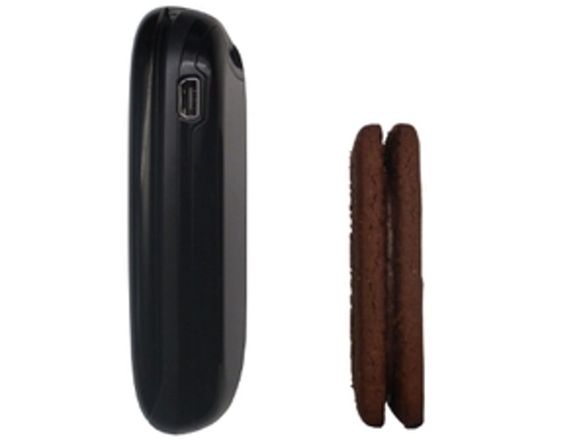 The plastic OT-222 isn't unattractive, resembling a shiny, black pebble when the screen is flipped down. We don't think you'll be ashamed to whip it out in public. A blue LED on the front flashes when you've received a message or missed a call, and a small port on the side of the phone lets you connect the mains charger and hands-free headset.