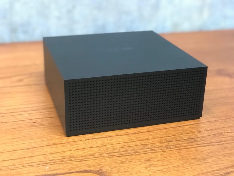 This Recast is designed to live out of sight somewhere near the OTA antenna it's attached to, so the design doesn't matter as much. It's so indistinct that I only realized I'd placed it upside down when writing this very paragraph -- the top is black plastic with "Amazon" on it, while the bottom is a grippy rubber. If dimensions are important for whatever reason, it's 7.1-inches square by 2.9-inches high -- or the same size as a Mac Mini. There is one operation LED on the front that glows red when it's recording, white when the device is on, or blue if there's a connectivity problem.