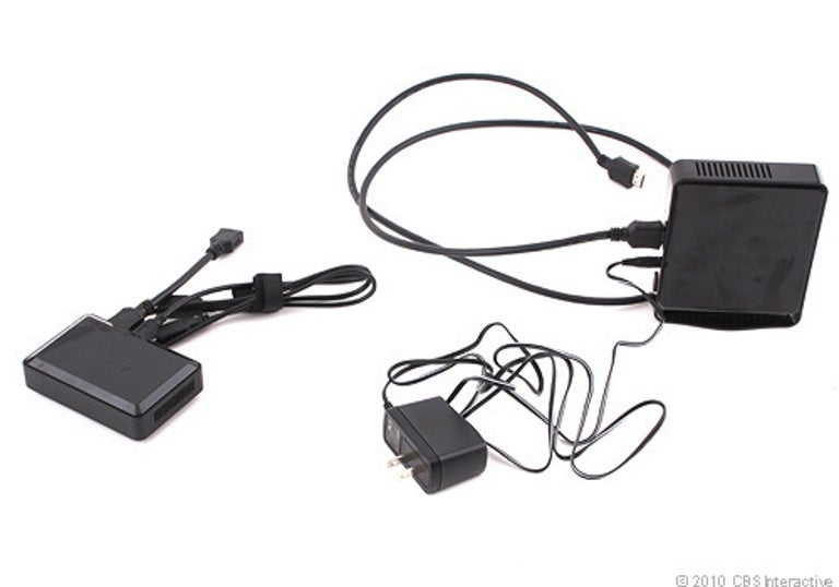 The transmitter is about the size of a small external hard drive, whereas the receiver is larger, about the size of a Wi-Fi router. Both units connect via HDMI cables to your laptop and monitor, and both require power. The receiver must be plugged in via an AC adapter; the transmitter can use an AC adapter or get power from a double USB plug. In either case, you end up with a lot of extra wires and hardware hanging off your laptop.