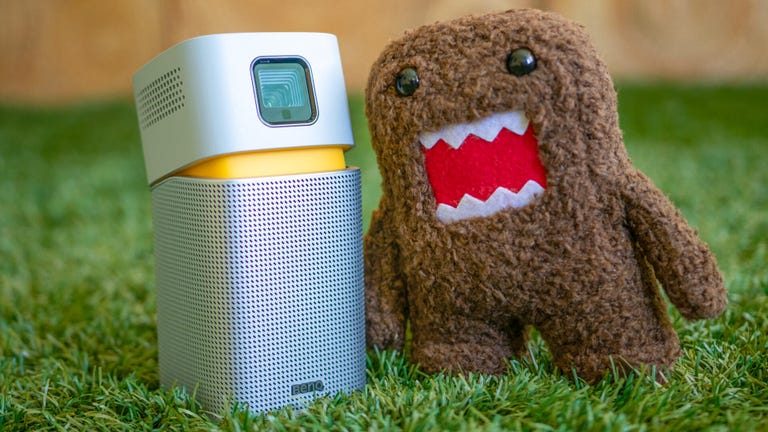 BenQ's GV1 portable projector looks like a robot you'd see in the background of a Pixar movie. Or in the real world, like a Bluetooth speaker. It's inexpensive, but its resolution is only standard definition and its image brightness is, well, not so bright. There isn't even a real HDMI input, though it does come with a dongle so you can connect HDMI sources. In short, this pipsqueak's design is pretty much the only reason to love it. It's so cute I couldn't help but introduce it to my Dōmo-kun -- they're roughly the same size at just 6 inches tall, and during my review period the two became fast friends.