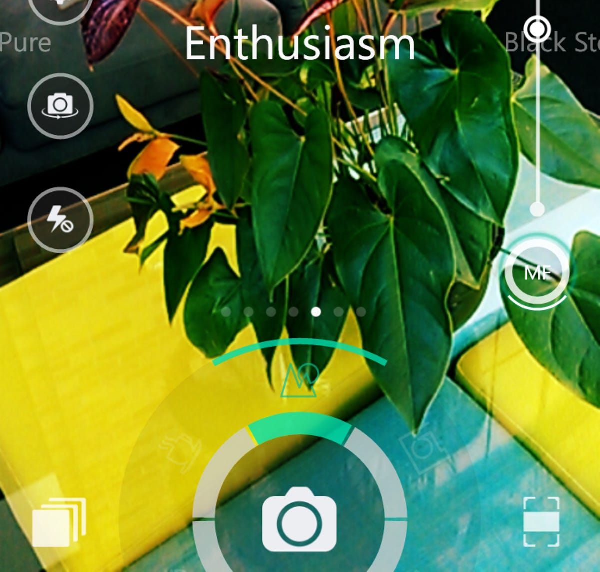 At the bottom of the screen there’s the “compass,” which is what Pinguo calls the wheel around the camera button. That's where you'll find all of the camera filters and effects. On the rest of the screen, there are buttons for flash and to switch cameras.