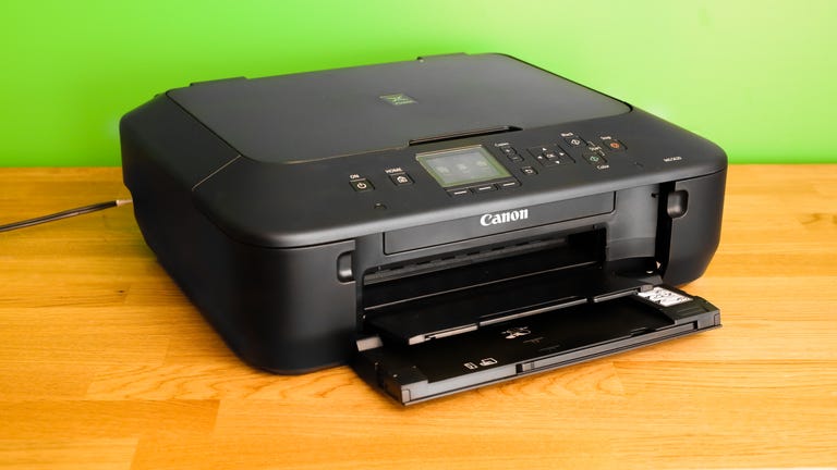 The MG5620 is an attractive printer with a matte black finish and a low-profile chassis that won't take up too much room in your work space. The exact measurements for the device are 18 inches wide, 14.6 inches deep, and 5.9 inches tall, and with no auto-document feeder in the back, you can push this printer all the way flush with a wall and keep it out of the way until you need it.