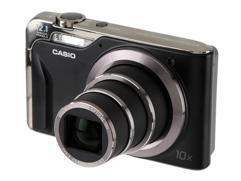 The Casio Exilim EX-H10 is an exciting camera--on paper. A 24mm-equivalent wide-angle lens with a 10x zoom, 12-megapixel resolution, 3-inch LCD, HD movie capture, and a battery life of up to 1,000 shots, all tucked in a 1-inch-thick body. Unfortunately, its physical self is a little less rosy, like just OK photo quality, mixed shooting performance (though its shutter lag is minuscule), and a cramped control layout. However, the battery life is stellar and although the lens isn't perfect, it's on par with the competition. So if you're after that lens in the smallest body possible, want to go an entire vacation without recharging, and aren't looking to turn your photos into fine art, the H10 is worth considering.